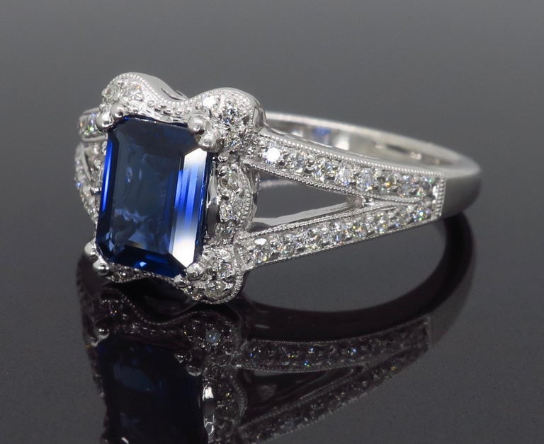 4.5 out of 5 stars. 5.00ct blue sapphire and diamond engagement wedding ring 10k white gold over $134.99 Work with the expert designers at joseph jewelry online or in our bellevue and seattle area showrooms to customize your own emerald cut engagement ring with a halo, solitaire, vintage, or classic design. Emerald cut sapphire engagement ring, blue sapphire ring, three stone ring, promise ring, blue gemstone ring, september birthstone ring. This ring cannot be resized.